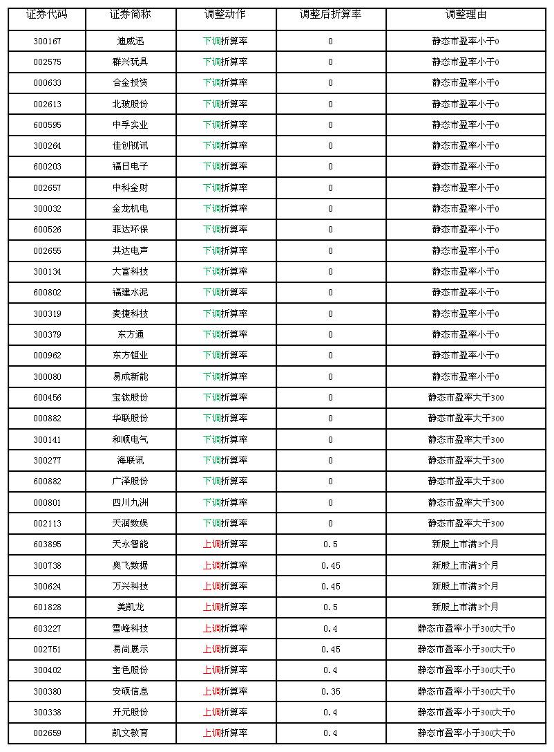 根据《长城证券股份有限公司融资融券业务担保物管理办法》的相关规定,自2018年4月23日起对可充抵保证金证券折算率做如下调整: