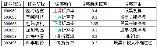 根据《长城证券股份有限公司融资融券业务担保物管理办法》的相关规定,自2018年4月25日起对可充抵保证金证券折算率做如下调整:
