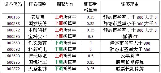 根据《长城证券股份有限公司融资融券业务担保物管理办法》的相关规定,自2018年5月21日起对可充抵保证金证券折算率做如下调整: