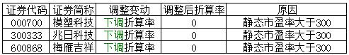 根据《长城证券股份有限公司融资融券业务担保物管理办法》的相关规定,今日将鹰19转债(110063)、华夏地产(515060)、工银500(510530)调入可充抵保证金证券范围,并设置折算率为0.7。另将华特气体(688268)的融资保证金比例调整为1.3。自2020年1月6日起,对可充抵保证金证券折算率做如下调整: