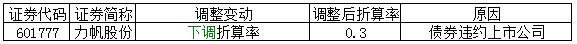 根据《长城证券股份有限公司融资融券业务担保物管理办法》的相关规定,今日将新春转债(113568)调入可充抵保证金证券范围,并设置折算率为0.7;将亚药转债(128062)调出可充抵保证金证券范围;将南新制药(688189)的融资保证金比例调整为1.3。另外,对可充抵保证金证券折算率做如下调整: