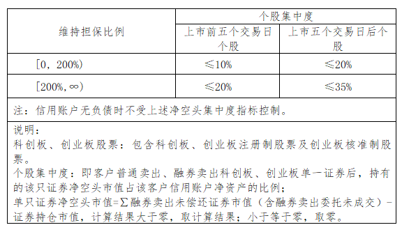 为切实做好融券业务风险控制,保障投资者权益,我司决定自2021年12月16日起,增加信用账户单证券净空头集中度控制参数,具体控制指标见下表:
