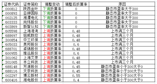 根据《长城证券股份有限公司融资融券业务担保物管理办法》的相关规定,今日将风光股份(301100)调入可充抵保证金证券范围和融资标的证券范围,博杰转债(127051)、睿智FOF(501218)、中关村(508099)调入可充抵保证金证券范围,ST仁智(002629)撤销风险警示调入可充抵保证金证券范围。另外,自2021年12月20日起,对可充抵保证金证券折算率做如下调整: