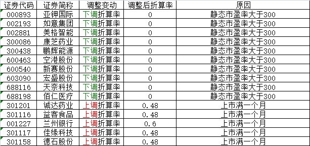 根据《长城证券股份有限公司融资融券业务担保物管理办法》的相关规定,今日将华兰疫苗(301207)调入可充抵保证金证券范围和融资标的证券范围,将比依股份(603215)、基建ETF(159619)、港股互联网ETF(513770)调入可充抵保证金证券范围。另外,自2022年2月21日起,对可充抵保证金证券折算率做如下调整: