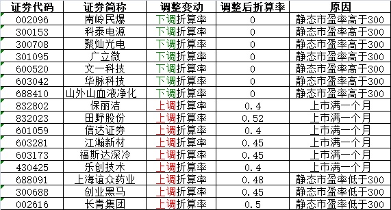 根据《长城证券股份有限公司融资融券业务担保物管理办法》的相关规定,今日将四川黄金(001337)、金海通(603061)调入可充抵保证金证券范围,另外,自2023年3月6日起,对可充抵保证金证券折算率做如下调整: