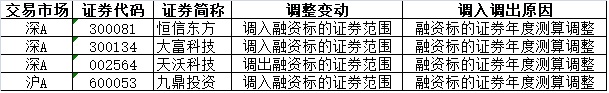 根据《长城证券股份有限公司融资融券业务担保物管理办法》的相关规定,我司于2023年5月31日收市后,对融资标准证券范围进行调整,调整名单如下: