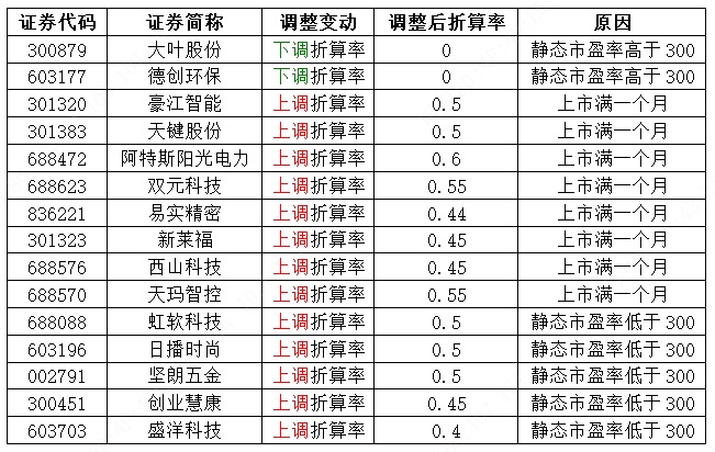 根据《长城证券股份有限公司融资融券业务担保物管理办法》的相关规定,今日将海科新源(301292)、致尚科技(301486)调入可充抵保证金证券范围和融资标的证券范围,将金埔转债(123498)、山河转债(123199)、恒邦转债(127086)调入可充抵保证金证券范围,另外,自2023年7月10日起,对可充抵保证金证券折算率进行调整,调整名单如下: