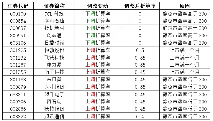 根据《长城证券股份有限公司融资融券业务担保物管理办法》的相关规定,自2023年7月17日起,对可充抵保证金证券折算率进行调整,调整名单如下: