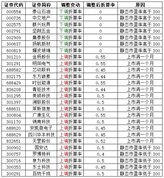 根据《长城证券股份有限公司融资融券业务担保物管理办法》的相关规定,今日将逸飞激光(688646)调入可充抵保证金证券范围和融资标的证券范围,将新研股份(300159)、纳斯达克100指数ETF(159513)调入可充抵保证金证券范围,另外,自2023年7月31日起,对可充抵保证金证券折算率进行调整,调整名单如下: