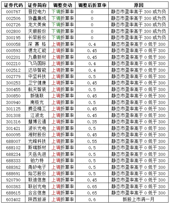 根据《长城证券股份有限公司融资融券业务担保物管理办法》的相关规定,今日将天弘中证工业有色金属主题ETF(159157)、富国中证光伏产业ETF(560230)、景顺长城中证有色金属矿业主题ETF(560290)、富国中证智选船舶产业ETF(560710)、鹏华科创板芯片设计主题ETF(589170)调入可充抵保证金证券范围,另外,自2026年2月9日起,对部分可充抵保证金证券折算率进行调整,名单如下: