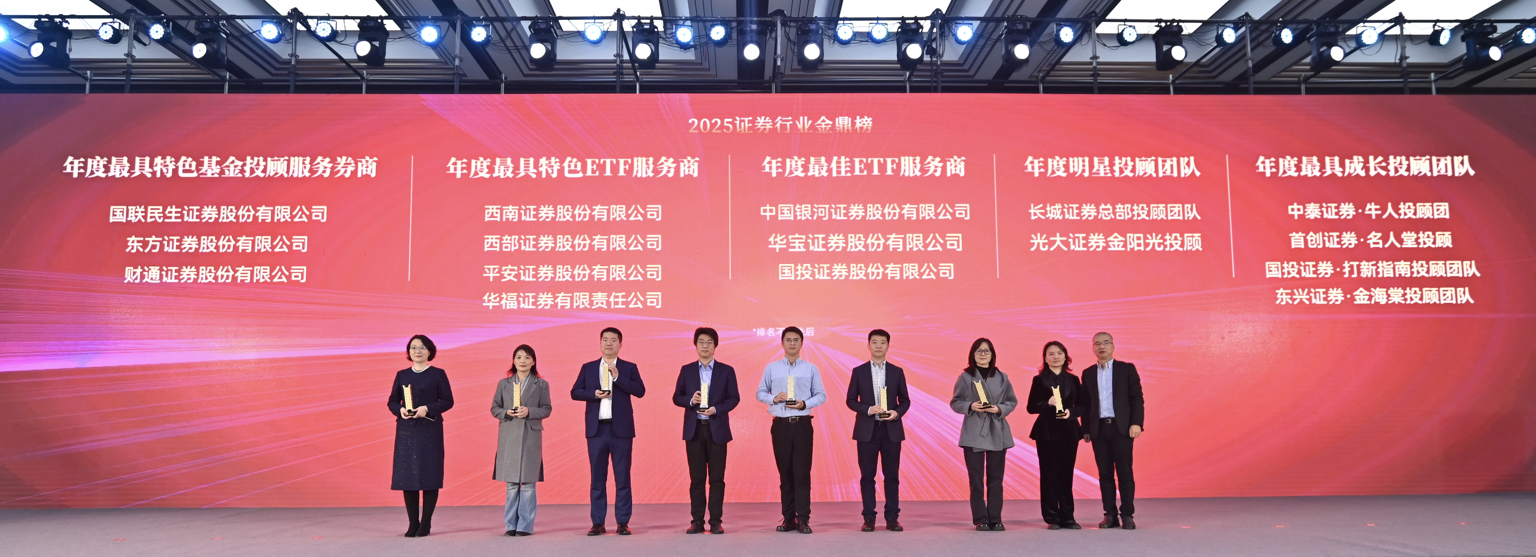 11月28日,由每日经济新闻主办的“2025资本市场高质量发展论坛”在成都圆满结束,论坛同步发布了“2025证券行业金鼎榜单”。长城证券凭借在自营投资、投行业务和财富管理领域的卓越表现,一举荣获“2025年度最佳券商自营团队”“2025年度新锐投行债券承销商”“2025年度明星投顾团队”三项殊荣,并连续7年荣登“2025中国证券业上市公司品牌价值榜TOP30”,业务实力和品牌影响力获得行业双重认可。