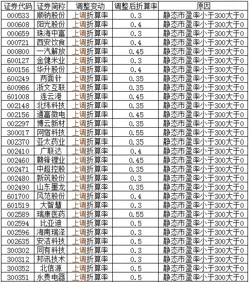 根据《长城证券股份有限公司融资融券业务担保物管理办法》的相关规定,今日将环旭转债(113045)、傲农转债(113620)、环保ETF(159861)、云ETF(159890)、华东科技(000727)、京城股份(600860)调入可充抵保证金证券范围,将恒宇信通(300965)调入可充抵保证金证券范围及融资标的证券范围,并将英力股份(300956)、腾景科技(688195)的融资保证金比例调整为1.2。自4月6日起,对可充抵保证金证券折算率做如下调整: