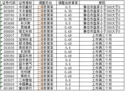根据《长城证券股份有限公司融资融券业务担保物管理办法》的相关规定,今日将华生科技(605180)、佳禾食品(605300)、医疗机械(159883)调入可充抵保证金证券范围,志特新材(300986)调入可充抵保证金证券范围及融资标的证券范围。自5月6日起,对可充抵保证金证券折算率做如下调整: