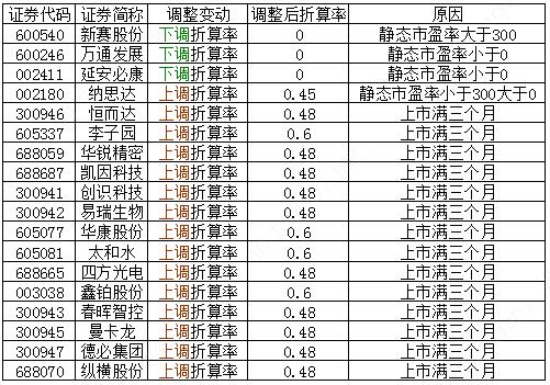 根据《长城证券股份有限公司融资融券业务担保物管理办法》的相关规定,今日将财达证券(600906)、旗滨转债(113047)、凤21转债(113623)、汽车ETF(516110)、机械ETF(516960)调入可充抵保证金证券范围,蕾奥规划(300989)调入可充抵保证金证券范围及融资标的证券范围,并将中红医疗(300981)、苏文电能(300982)的融资保证金比例调整为1.2。自5月10日起,对可充抵保证金证券折算率做如下调整: