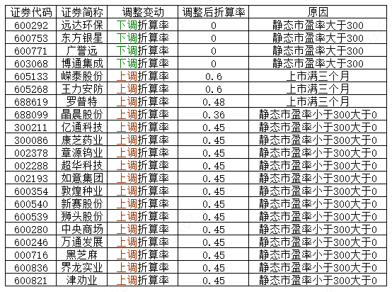 根据《长城证券股份有限公司融资融券业务担保物管理办法》的相关规定,自5月24日起,对可充抵保证金证券折算率做如下调整: