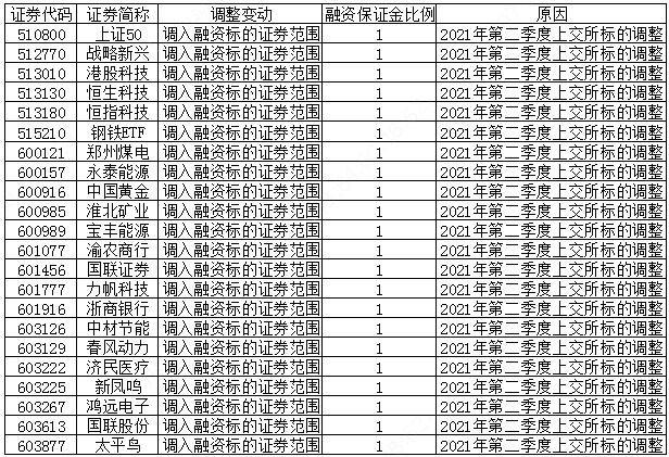 根据《长城证券股份有限公司融资融券业务担保物管理办法》的相关规定,今日对融资标的证券范围进行如下调整: