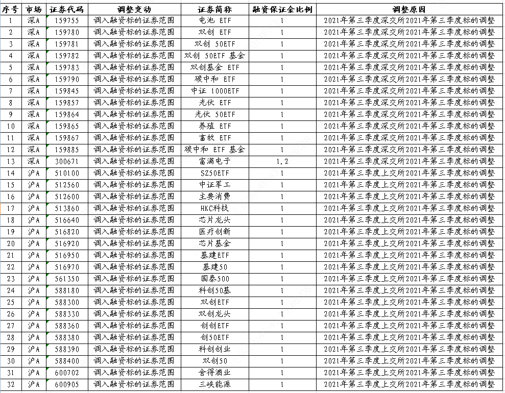 根据《长城证券股份有限公司融资融券业务担保物管理办法》的相关规定,我司于10月18日对融资标的证券范围进行如下调整: