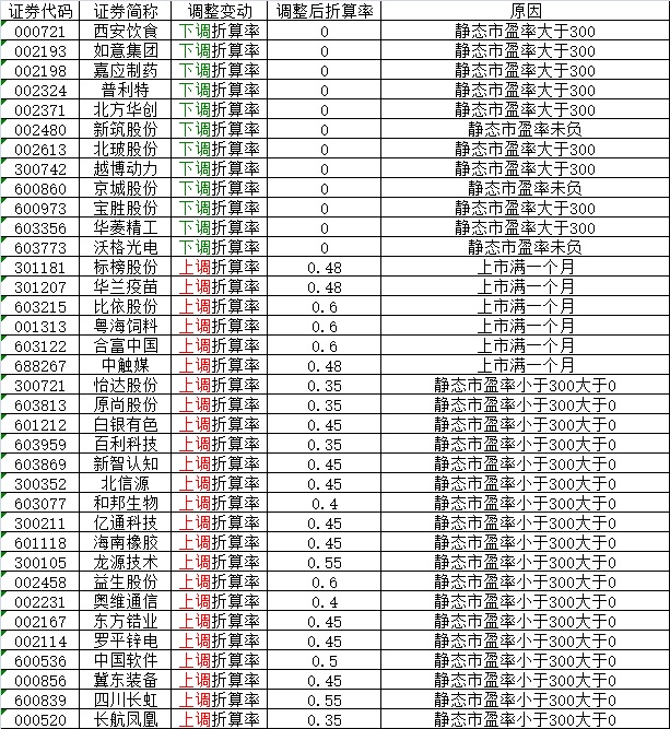 根据《长城证券股份有限公司融资融券业务担保物管理办法》的相关规定,今日将莱特光电(688150)、理工导航(688282)调入可充抵保证金证券范围和融资标的证券范围,康冠科技(001308)、通22转债(110085)、平安金ETF(159832)、港股消费(513960)、红300(517780)调入可充抵保证金证券范围,另外,自2022年3月21日起,对可充抵保证金证券折算率做如下调整: