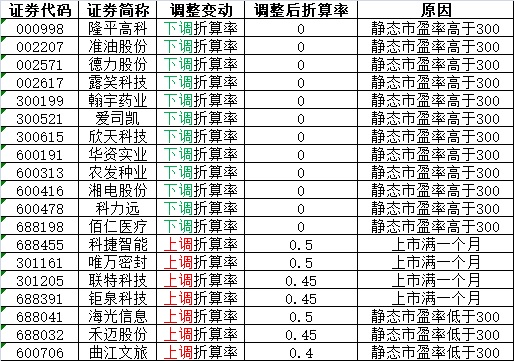 根据《长城证券股份有限公司融资融券业务担保物管理办法》的相关规定,今日将东久REIT(508088)、海航基础(600515)调入可充抵保证金证券范围,另外,自2022年10月17日起,对可充抵保证金证券折算率做如下调整: