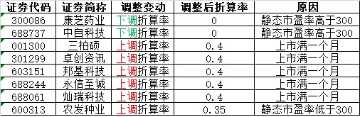 根据《长城证券股份有限公司融资融券业务担保物管理办法》的相关规定,今日将天元宠物(301335)、美埃科技(688376)调入可充抵保证金证券范围和融资标的证券范围,将云中马(603130)、奕瑞转债(118025)、利元转债(118026)调入可充抵保证金证券范围,另外,自2022年11月21日起,对可充抵保证金证券折算率做如下调整: