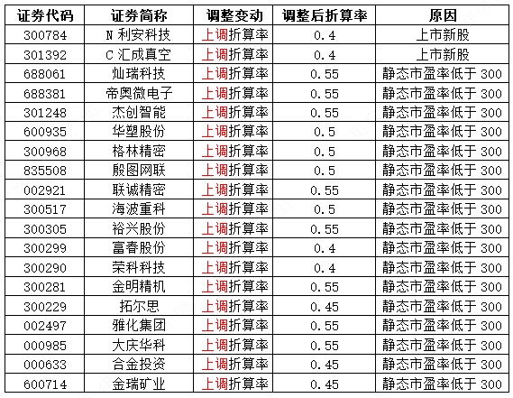 根据《长城证券股份有限公司融资融券业务担保物管理办法》的相关规定,今日将利安科技(300784)调入可充抵保证金证券范围和融资标的证券范围,将博时中证2000ETF(159533)、大成中证工程机械ETF(159542)、南方深证主板50ETF(159578)调入可充抵保证金证券范围,另外,自2024年6月11日起,对可充抵保证金证券折算率进行调整,名单如下: