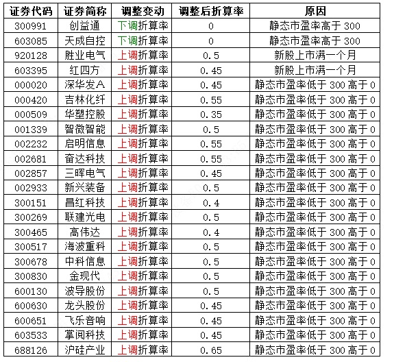 根据《长城证券股份有限公司融资融券业务担保物管理办法》的相关规定,今日将恒生新药(520500)、南方中证A100ETF(560380)调入可充抵保证金证券范围,另外,自2024年12月30日起,对可充抵保证金证券折算率进行调整,名单如下: