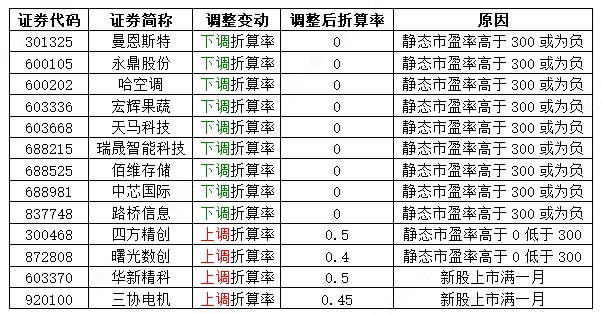 根据《长城证券股份有限公司融资融券业务担保物管理办法》的相关规定,自2025年10月9日起,对部分可充抵保证金证券折算率进行调整,名单如下: