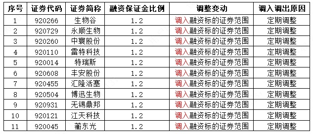 根据我司《长城证券股份有限公司融资融券业务担保物管理办法》的相关规定,我司自2026年2月2日起,对部分北交所融资标的证券进行调整,名单如下:
