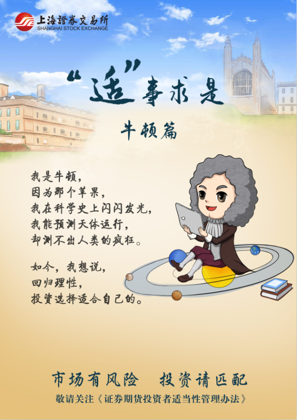 作为中小投资者权益保护重要利器的《证券期货投资者适当性管理办法》将于7月1日施行。上交所特推出了适当性管理主题的系列投教宣传海报,让我们一起来看一下。