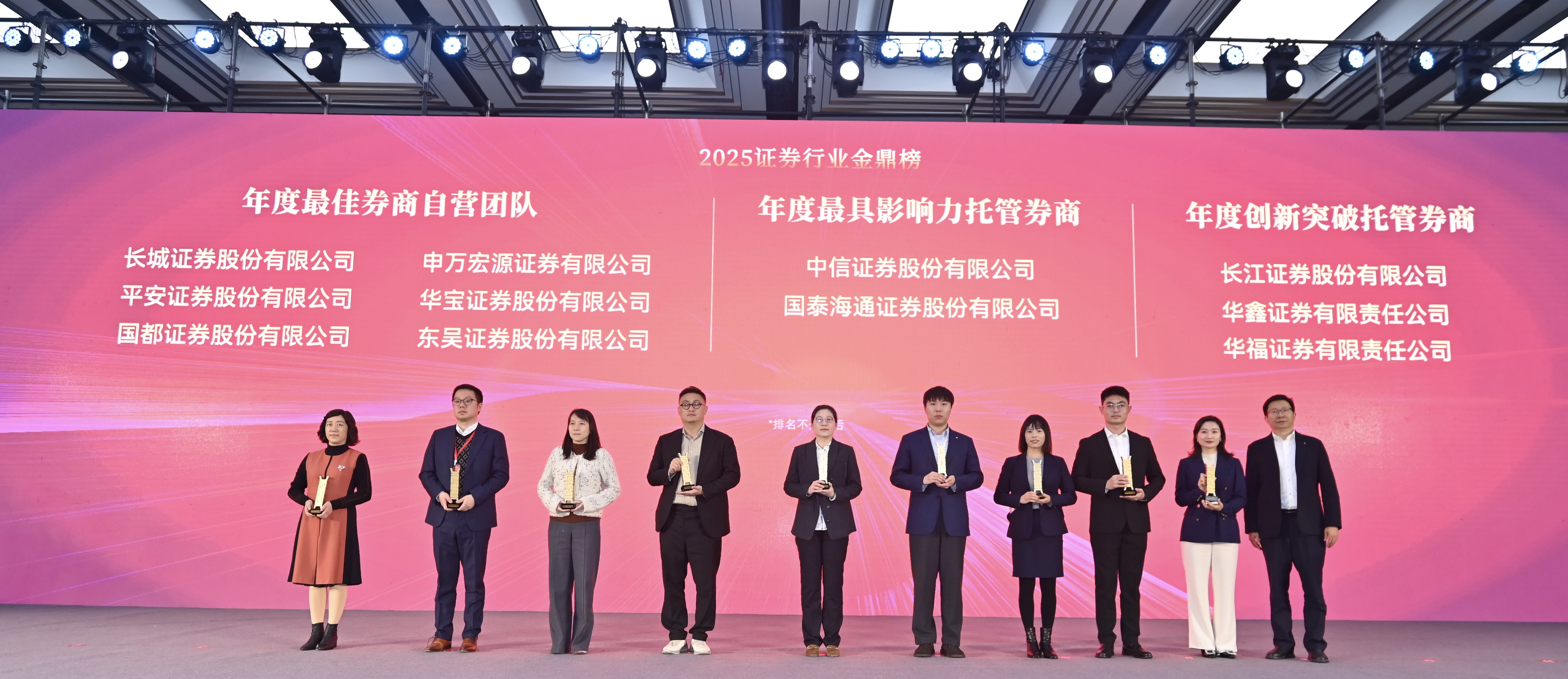 11月28日,由每日经济新闻主办的“2025资本市场高质量发展论坛”在成都圆满结束,论坛同步发布了“2025证券行业金鼎榜单”。长城证券凭借在自营投资、投行业务和财富管理领域的卓越表现,一举荣获“2025年度最佳券商自营团队”“2025年度新锐投行债券承销商”“2025年度明星投顾团队”三项殊荣,并连续7年荣登“2025中国证券业上市公司品牌价值榜TOP30”,业务实力和品牌影响力获得行业双重认可。